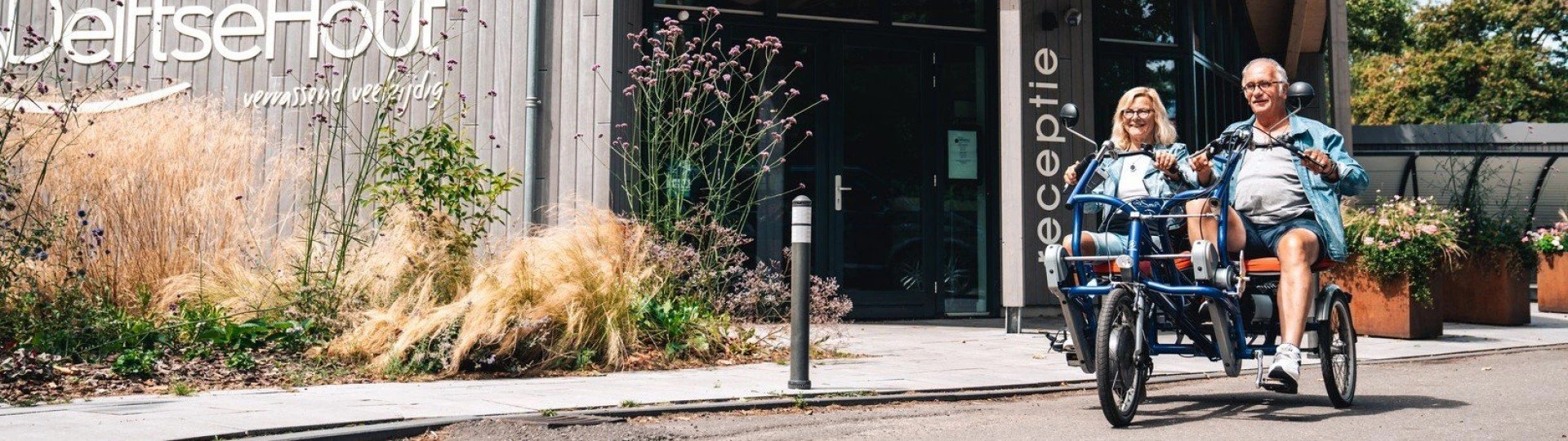 Sur le vélo duo (également connu sous le nom de « vélo de Mamie »), vous êtes assis l’un à côté de l’autre, ce qui est à la fois plus convivial et plus stable qu’un tandem. Le conducteur peut changer de vitesse (8 vitesses), pédaler, freiner et diriger le vélo. Le passager choisit lui-même s’il souhaite pédaler et à quel rythme. En plus des freins à main, le vélo est équipé d’un frein de stationnement, ce qui permet de descendre tranquillement sans que le vélo ne bouge.
