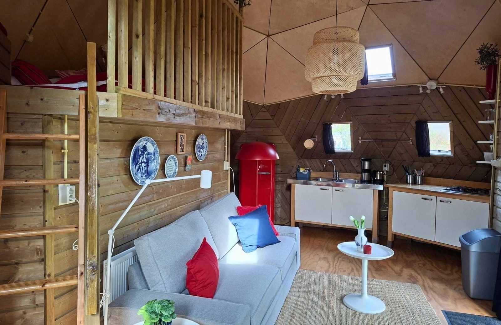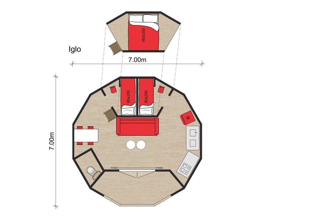 L’Igloo en bois est unique, chaleureux et délicieusement cosy. Entièrement isolé et aménagé avec un intérieur moderne et tendance, cet hébergement dégage une atmosphère de confort et de convivialité. La mezzanine de couchage est idéale pour un séjour romantique ou comme espace de jeu pour les enfants, offrant ainsi 8,5 m² d’espace de vie supplémentaire.