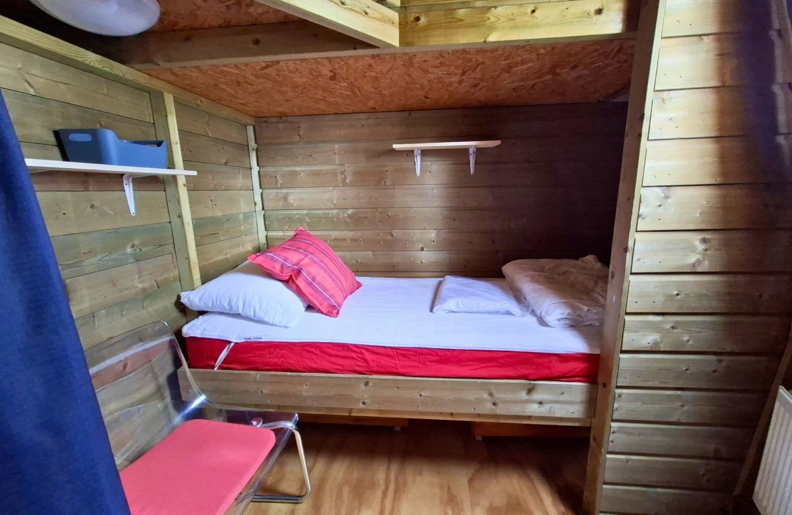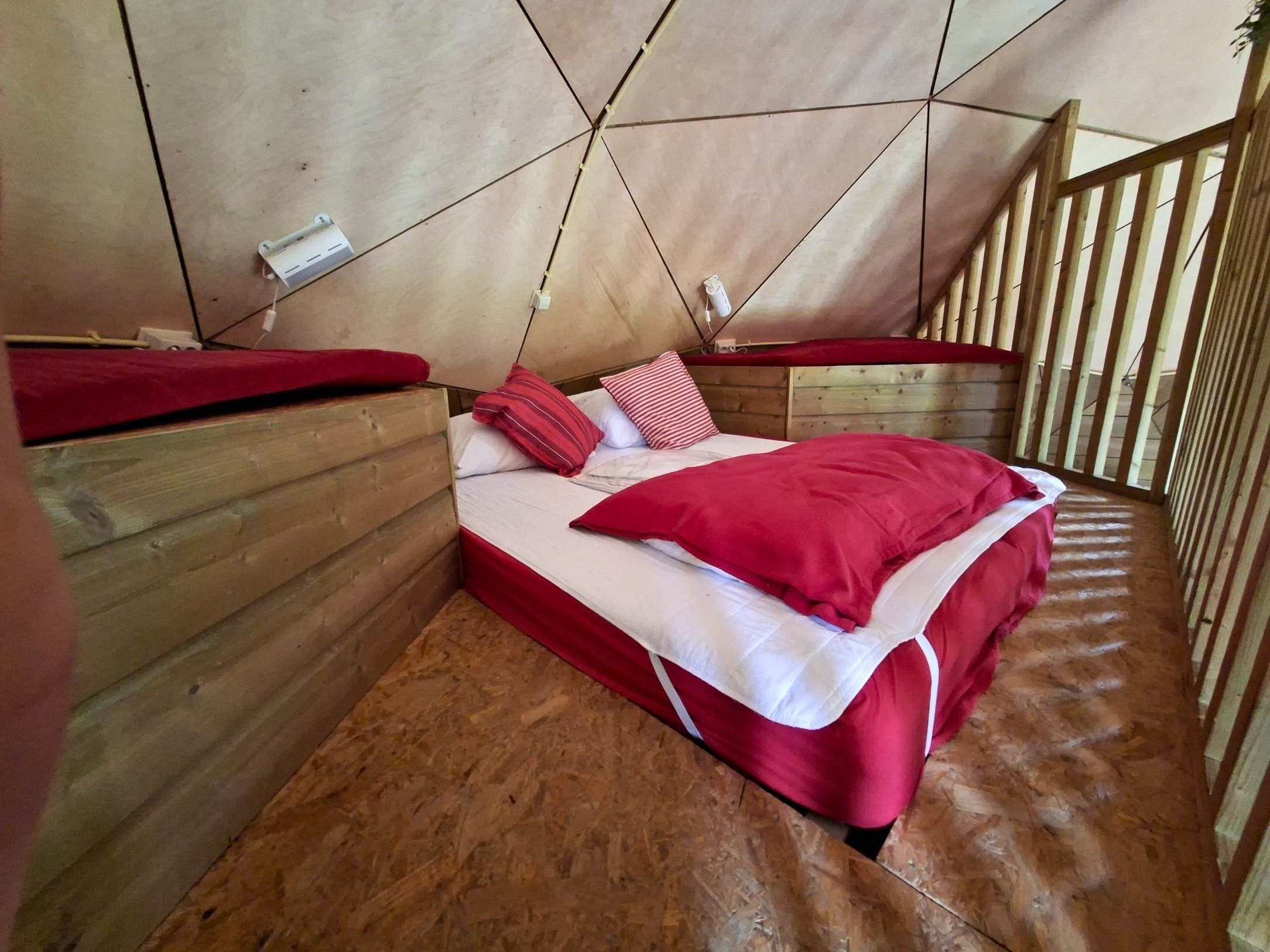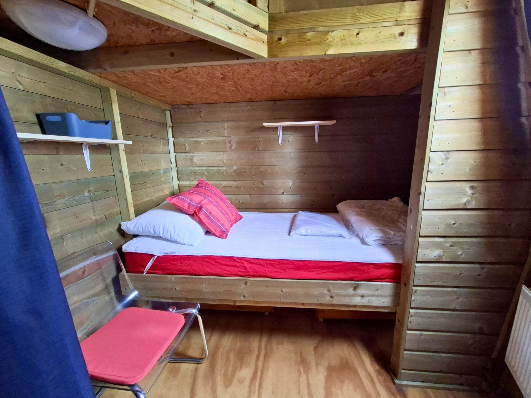 - Mezzanine de couchage avec lit double (également utilisable comme espace de jeux)